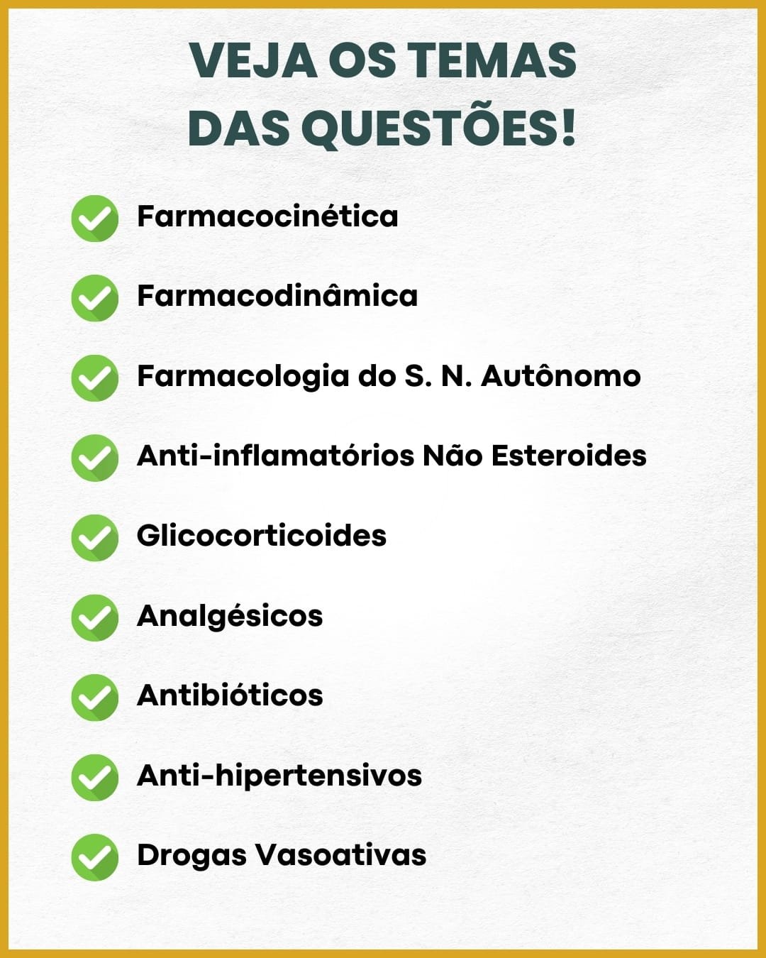 Consolide o seu conhecimento e domine a farmacologia com mais de 250 questões elaboradas com base em prática clínica e provas de residência!
